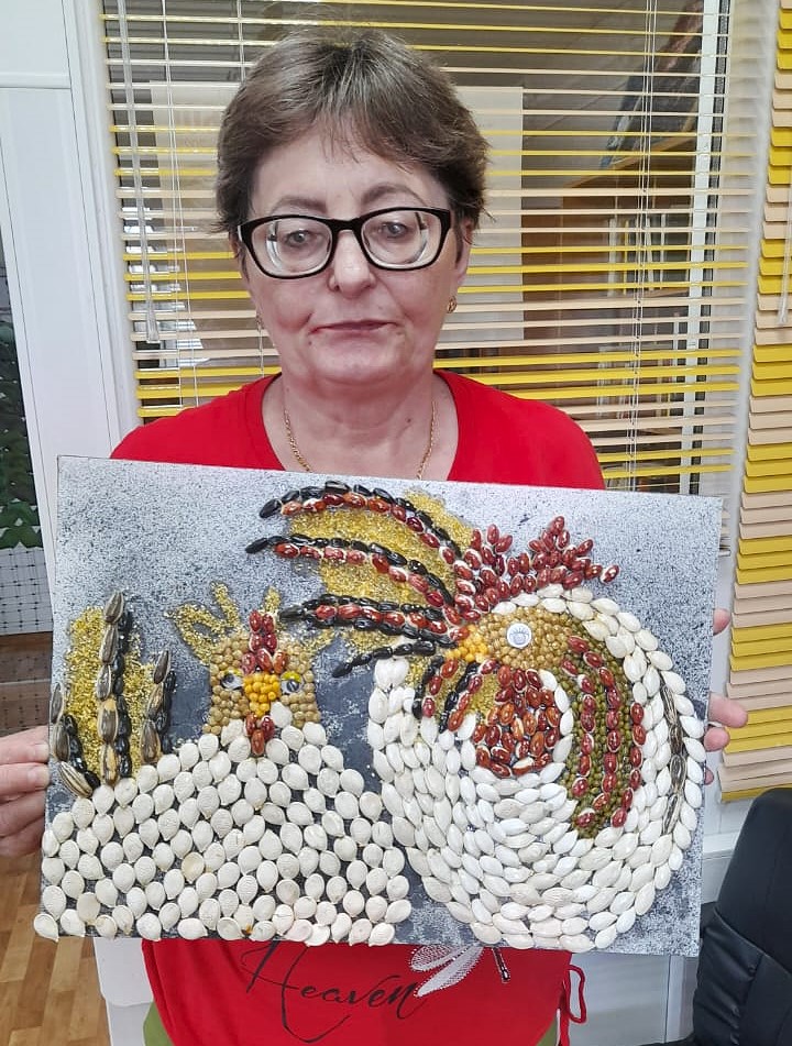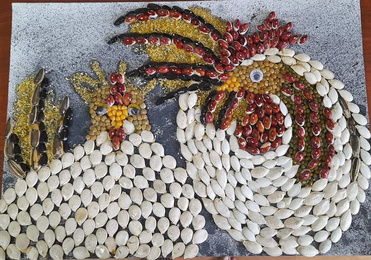 - Диплом лауреата II степени — Потылицына Наталья Павловна с конкурсной работой «Сладкая парочка» (картина из семян) в номинации “декоративно-прикладное искусство” (ДПИ).