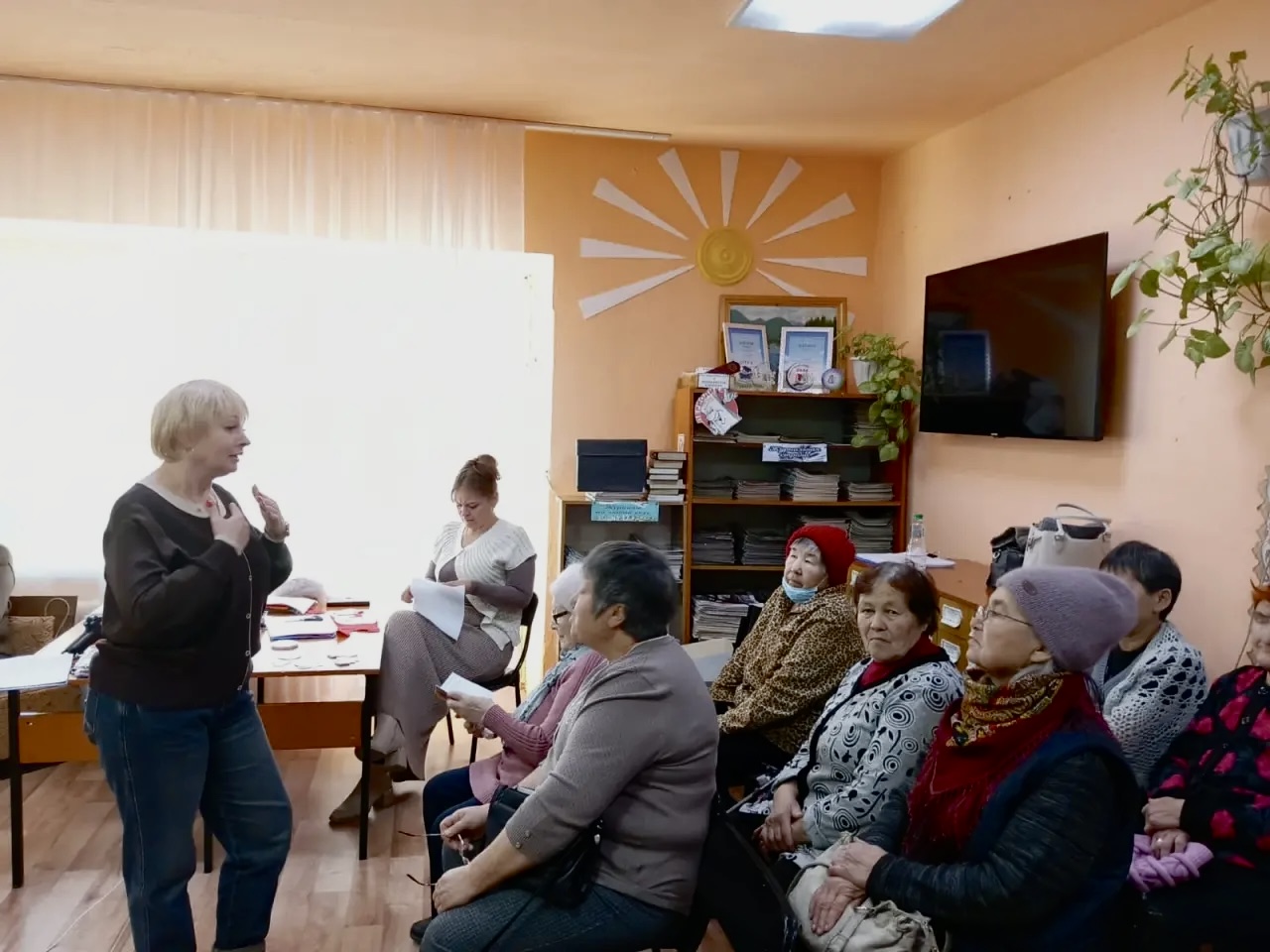 В рамках программы «Сибирское активное долголетие» специалисты социально-реабилитационного отделения Центра социального обслуживания населения посетили самую отдаленную территорию Ермаковского района. В ходе межведомственного взаимодействия встреча с гражданами пожилого возраста состоялась на базе филиала МБУ «ЕЦБС» «Верхнеусинская библиотека».