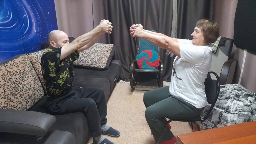 А группа “Активное долголетие” под руководством инструктора по адаптивной физической культуре Ломилкиной Надежды Николаевны проводит регулярные занятия дважды в неделю. Программа тренировок включает в себя комплекс упражнений, направленных на укрепление физического состояния и повышение тонуса мышц опорно-двигательного аппарата. Особое внимание уделяется дыхательной гимнастике по методу Александры Стрельниковой, которая является эффективным инструментом для улучшения функционального состояния дыхательной системы и повышения общей физической выносливости.