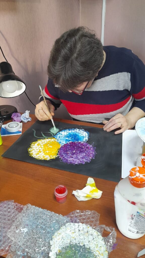 Так в социально-реабилитационном отделении, в группе дневного пребывания специалисты Центра для получателей социальных услуг создают условия для творческой самореализации. Наполнить творчеством день, значит дать выход эмоциональному проявлению души, ощутив при этом радость от готового результата совместной работы.