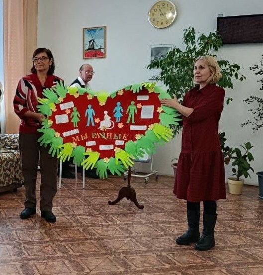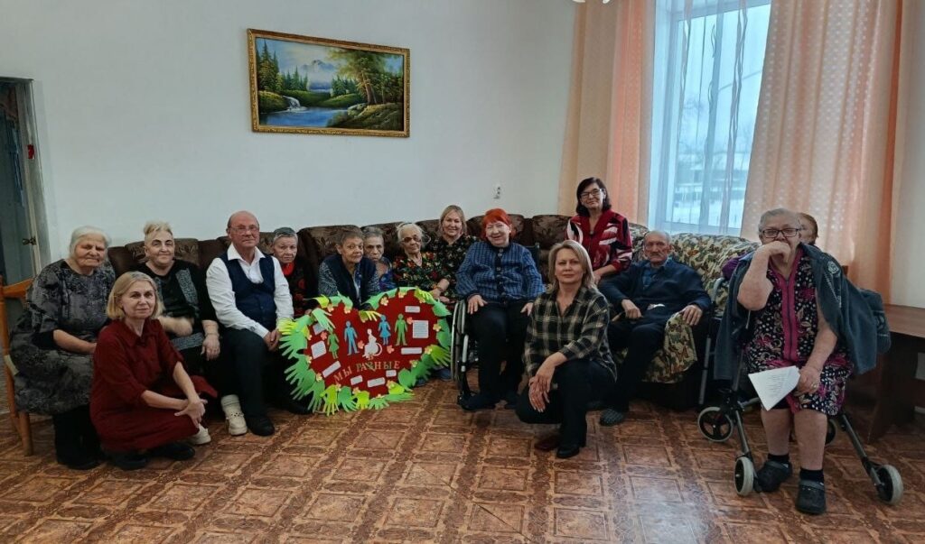 «Серебряные волонтеры» «КГБУ СО «КЦСОН «Ермаковский» не остались равнодушными к этой дате. В декаду инвалидов Иван Плахута и его супруга Маруся подарили много «солнечных» песен и душевной лирики жителям дома – интерната п. Ойский. Валентина Ивановна Шкуратова, Ирина Станиславовна Бахтина, Татьяна Михайловна Мелешко сделали своими руками открытку в виде большого сердца с мотивационными пожеланиями для людей с ограниченными возможностями здоровья и показали мастер- класс в нетрадиционной технике рисования «монотипия». И еще раз убедились, что даже среди людей, чьи возможности ограничены, много хороших и талантливых людей. Они лучше и добрее многих из нас, более оптимистичны и открыты для жизни, для всего нового и интересного. А завершил эту встречу депутат Совета депутатов Ермаковского муниципального округа Алиян Усуб Шабабович. Для жителей дома – интерната, он привез праздничный торт, что сделало эту встречу еще праздничнее и слаще.