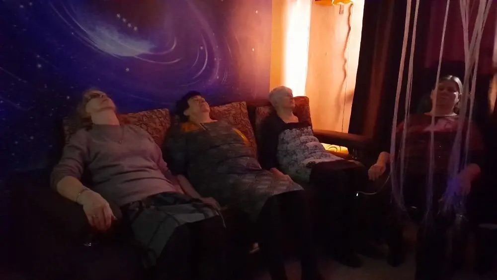 А в сенсорной комнате получатели социальных услуг группы дневного пребывания получили опыт аутогенной тренировки по Шульцу.