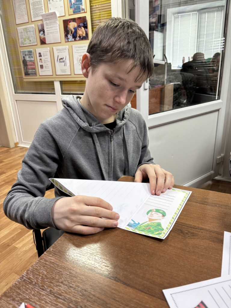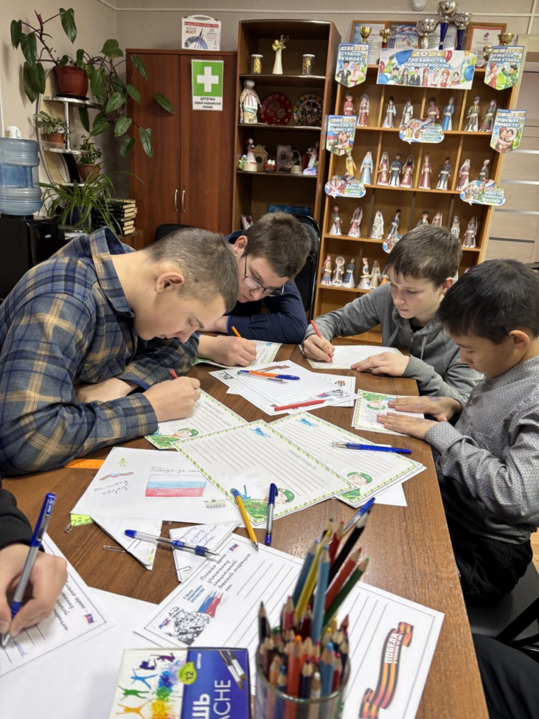 В преддверии Дня защитника Отечества в социально-реабилитационном отделении прошла акция «Письмо солдату». Активное участие в ней приняли дети участников специальной военной операции, которые с большим энтузиазмом писали письма и рисовали яркие рисунки с теплыми пожеланиями и словами поддержки для наших защитников.